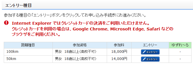 例年、ツアー利用あり・ツアー利用なしの項目を設けておりましたが、今大会よりエントリーボタンを下記のとおり変更させていただきますのでご確認ください。